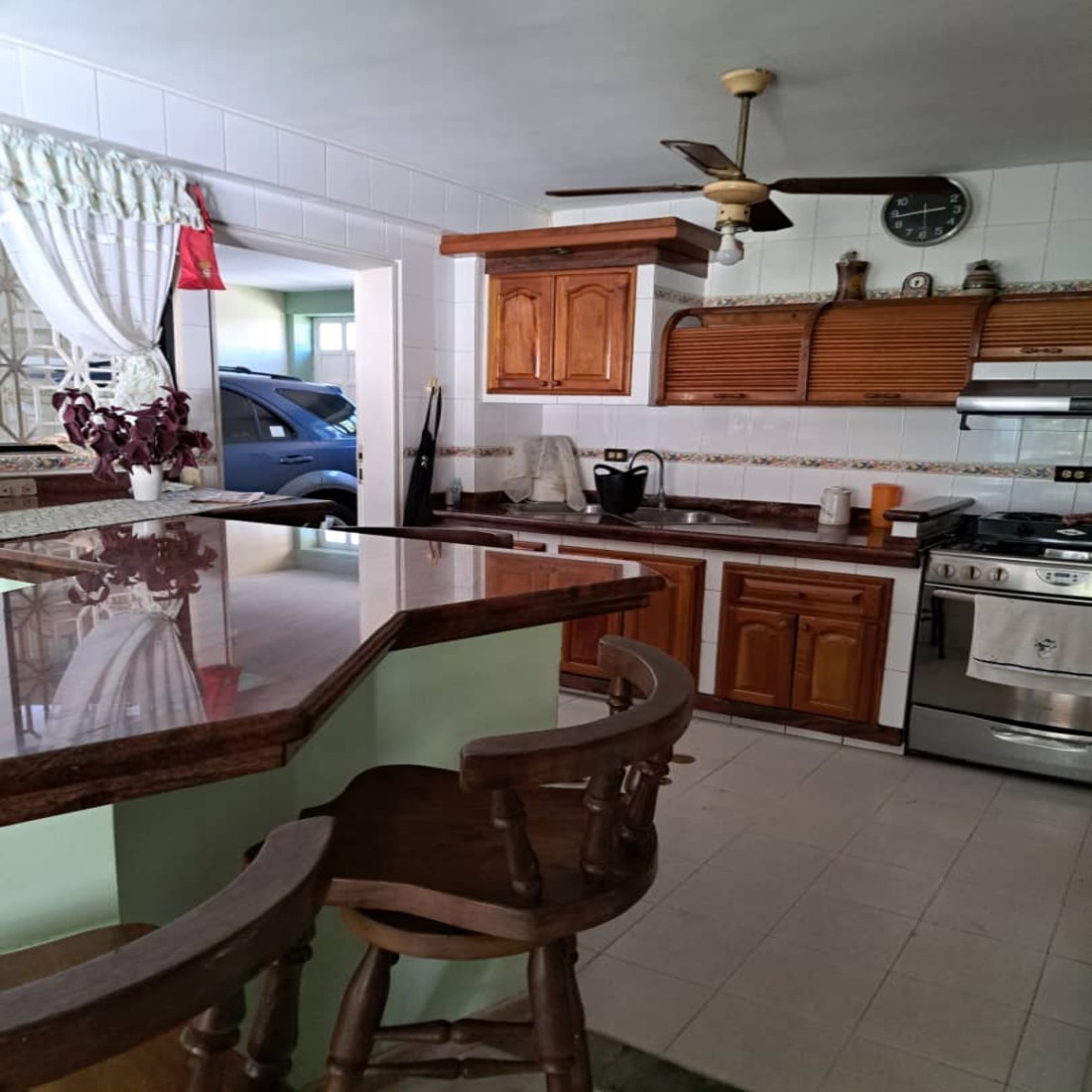 Dos (2) aires acondicionados, calentador eléctrico, estufa 4 hornillas con horno, campana, desayunado con bancos altos.