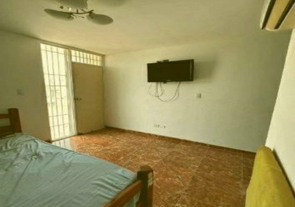 camas en las habitaciones, mesa comedor sofás, nevera, televisores aires acondicionados, lámparas y persianas el baño principal con puertas pareduch y gabinetes.