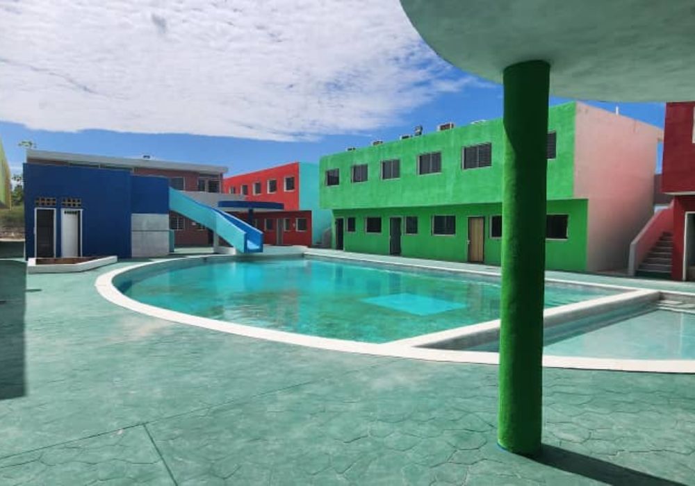 Bondades del Complejo Turístico: Tiene vigilancia privada las 24/7, portón eléctrico, caminerías, área para caney de 13 metros con 2 parrilleras un mesón y fregadero, jardines, cancha de volibol de playa, áreas de duchas, 2 baños de uso común en planta baja, piscina con tobogán y mampostería para niños y adultos, Tanque subterráneo con capacidad de 130.000 litros aproximadamente Conserjería de 2 niveles en un área aproximada de 65m2 Cincuenta y seis (56) puestos de estacionamiento con área de circulación vehicular.