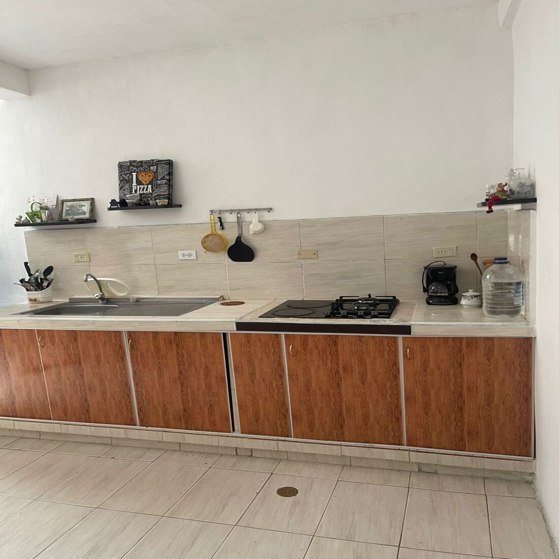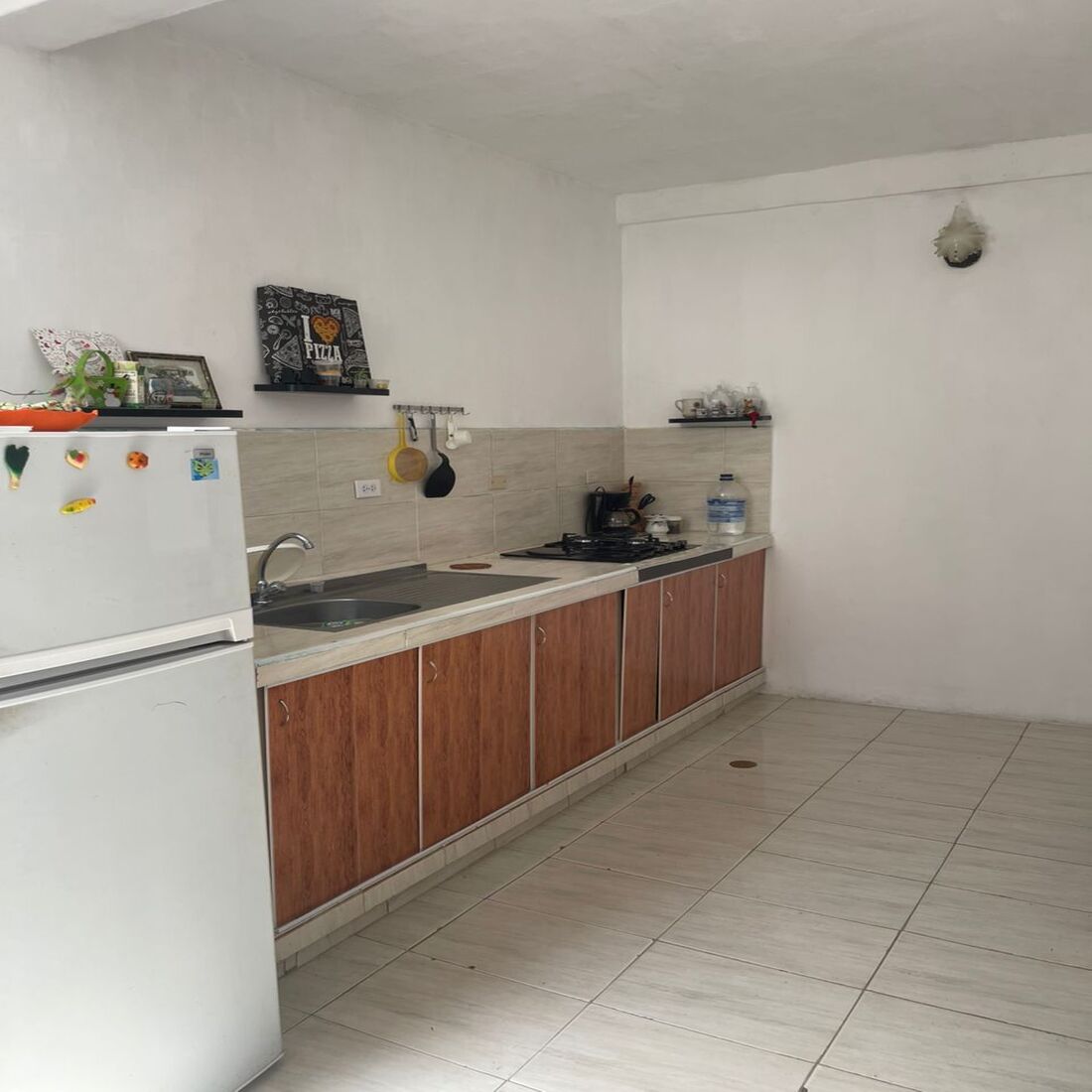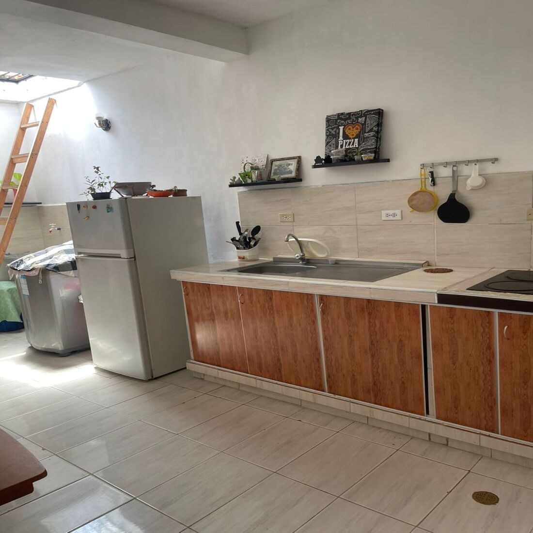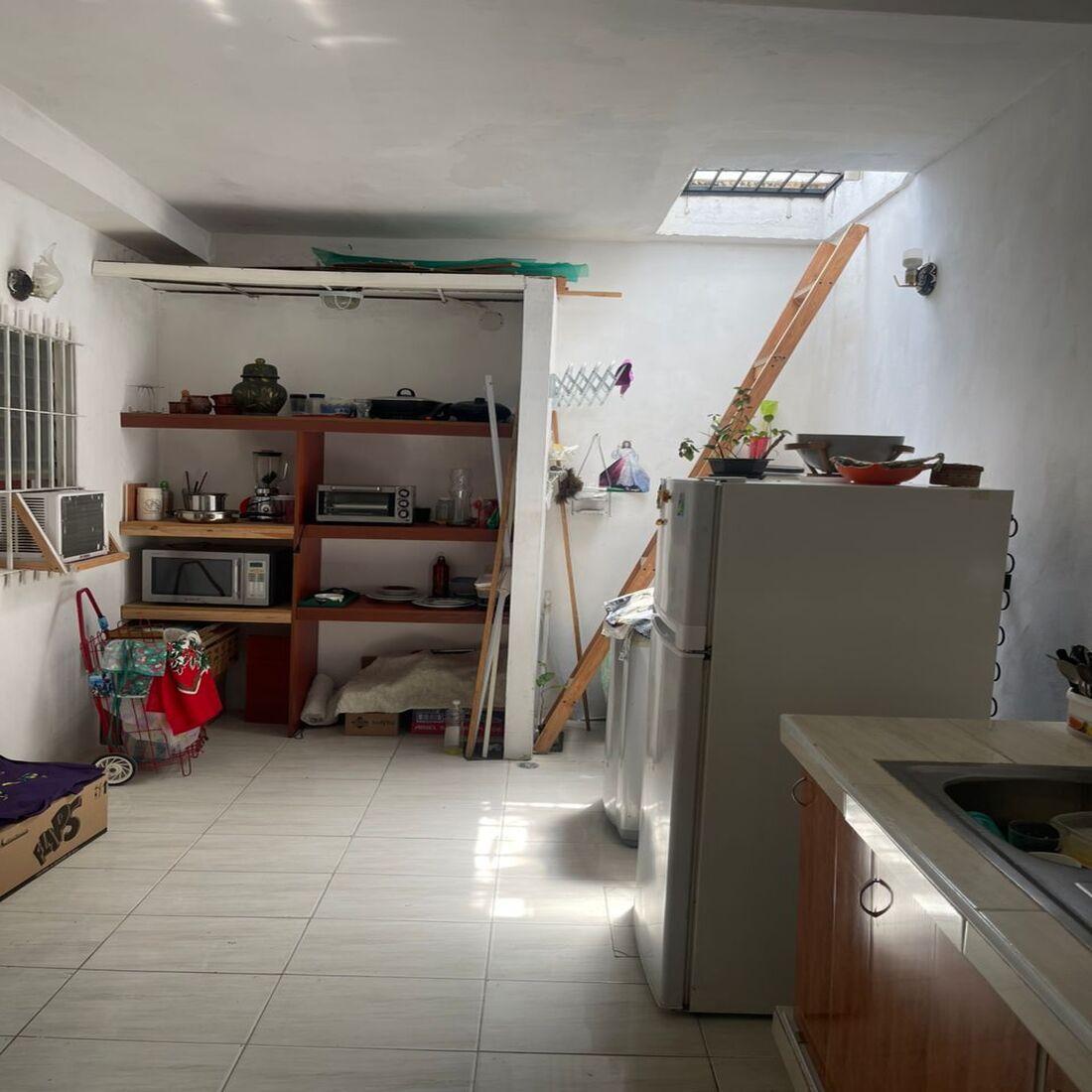 Cocina en mampostería con ampliación y gran despensa, Área de lavadero con cúpula acrílica para protección contra lluvias y rejas de seguridad.