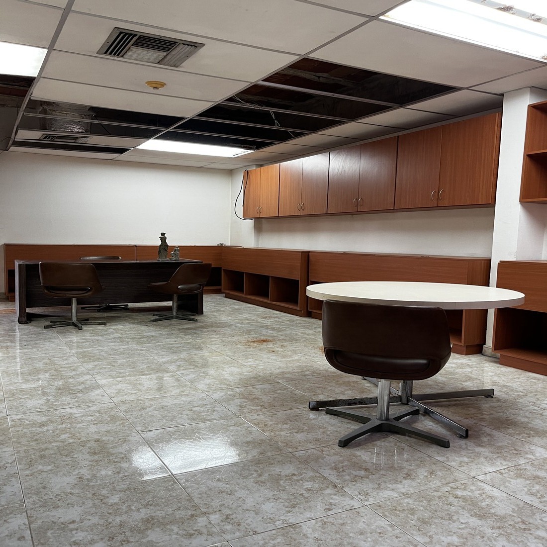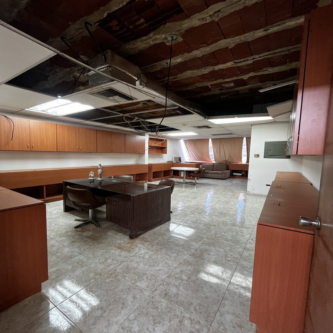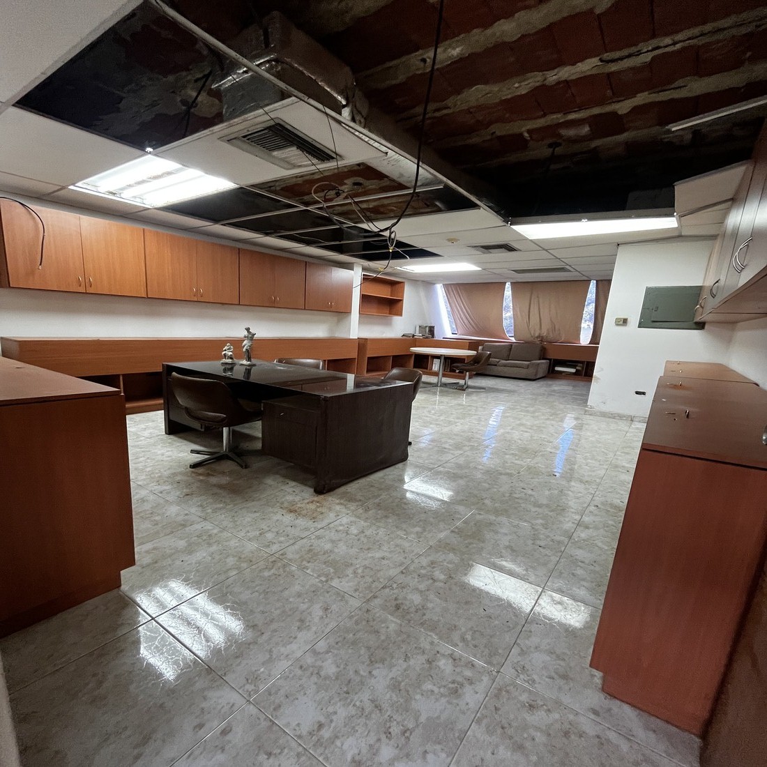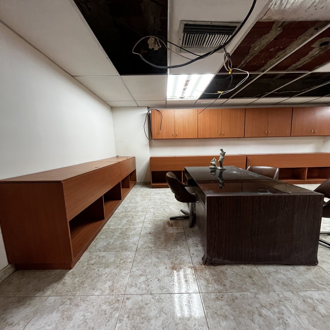 Un ambiente abierto con mobiliario y capacidad para colocar 6 puestos de trabajo.